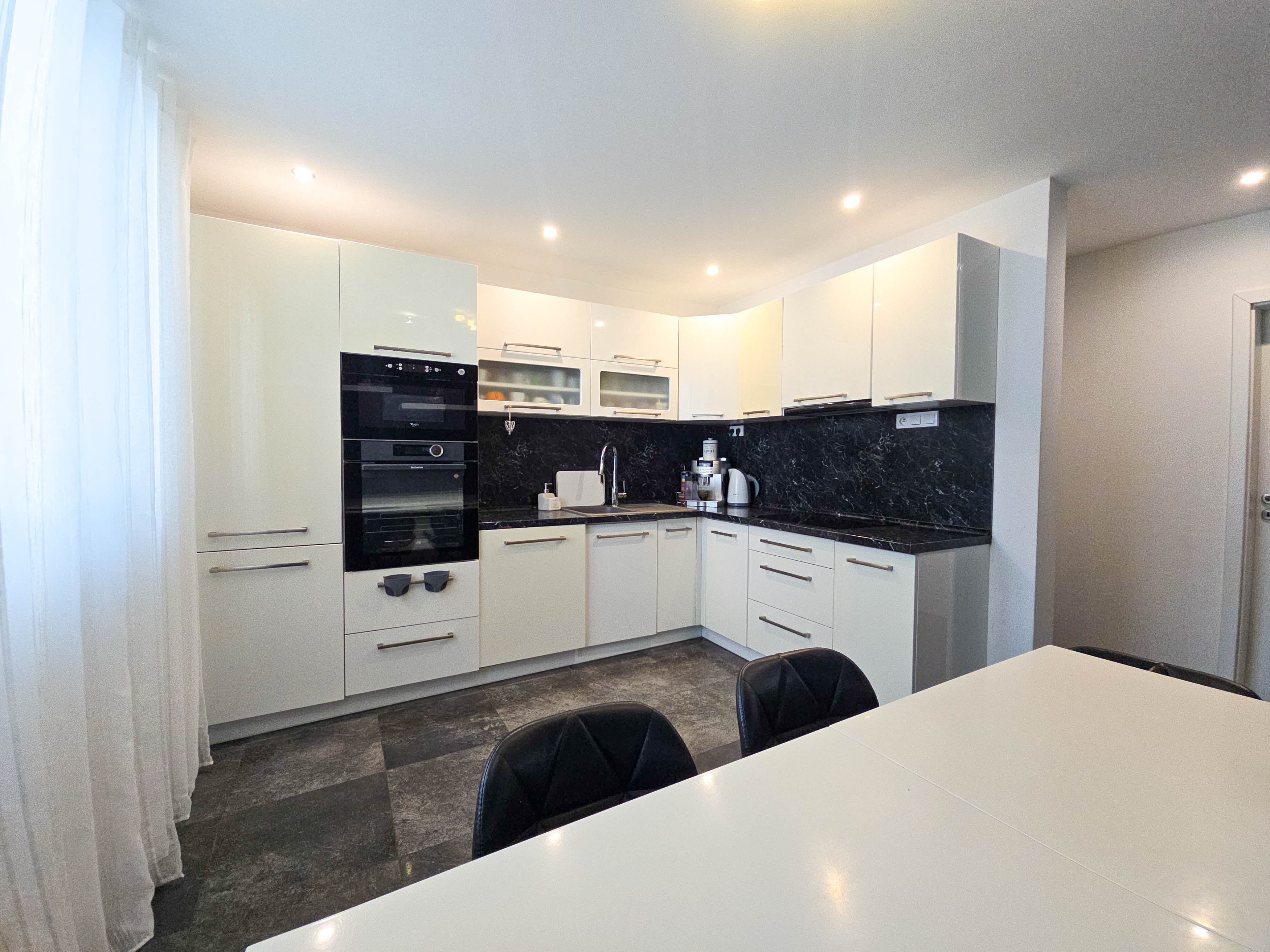 Kúrenie : Kuchyňa, WC, Kúpeľňa, Chodba – podlahové kúrenie, zvyšok domu radiátory. Klíma je v 3 izbách